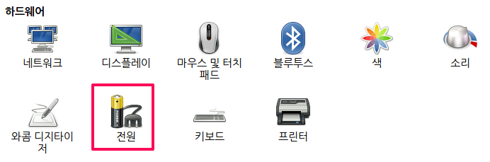 하드웨어 목록에서 전원 아이콘 클릭