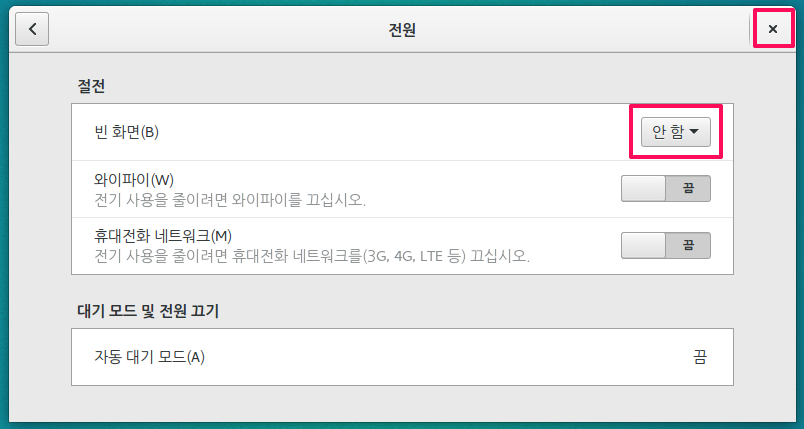안함으로 설정 후 x를 눌러 설정을 끝냅니다