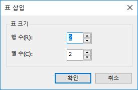 설정을 클릭하게 되면 직접 행과 열 수를 입력하여 만들기도 가능합니다.