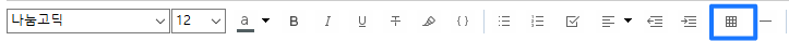 표는 노트 상단의 편집 도구 모음의 표 만들기를 통해 생성 가능합니다.