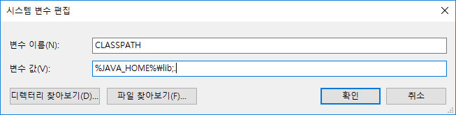 특히 CLASSPATH 설정시 끝에 ;. 을 추가해줍니다.
