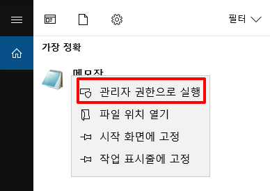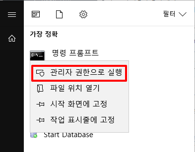 마우스 우클릭 후 관리자 권한으로 실행