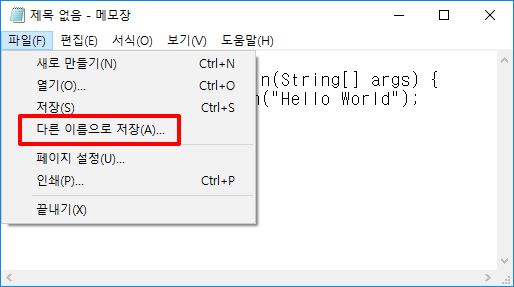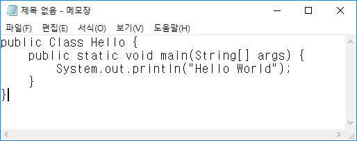메모장이 실행 되었다면 다음과 같이 따라서 코딩합니다.