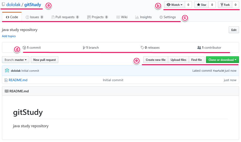그럼 본격적으로 GitHub에서 원격 저장소 구조가 어떻게 구성되어 있는지 알아보겠습니다. 다음의 항목들에 대해 차례대로 알아봅니다.