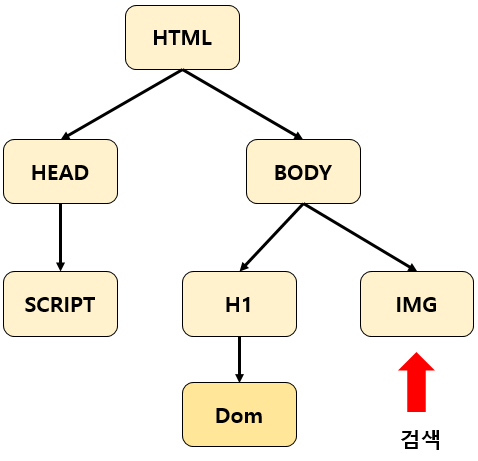 아래 그림과 같은 DOM 구조에서 IMG 태그를 찾는 방법을 알아보겠습니다.