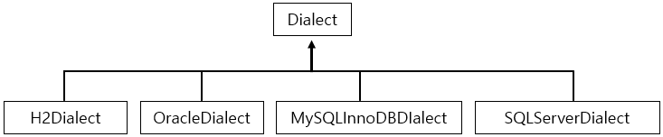 그러나 개발자는 JPA를 이용함에 있어서 쿼리를 작성할 필요도 없고, JPA를 사용하더라도 각 DBMS별로 조금씩 다른 SQL 방언을 걱정할 필요도 없습니다. JPA에서는 이를 Dialect라는 추상화된 방언 클래스를 제공하고 각 벤더에 맞는 구현체를 제공하고 있습니다.