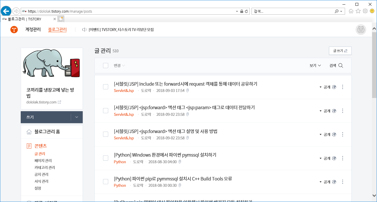 | [Tistory] 네이버 웹마스터 도구로 티스토리 블로그 등록하기 (0) | 2018.09.04 |
