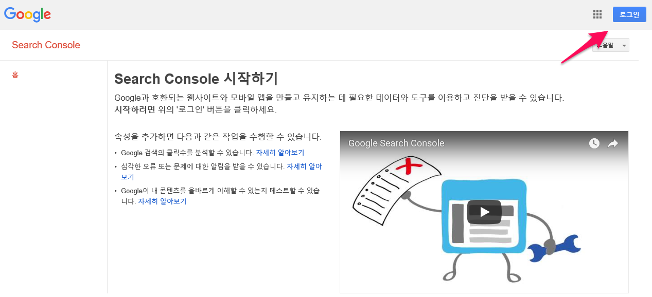 https://www.google.com/webmasters/tools/home?hl=ko