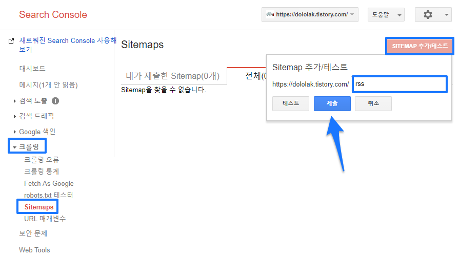 RSS 및 사이트맵 제출하기