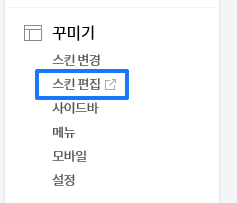 메뉴 중 스킨편집 메뉴가 있는데 메뉴를 클릭합니다.