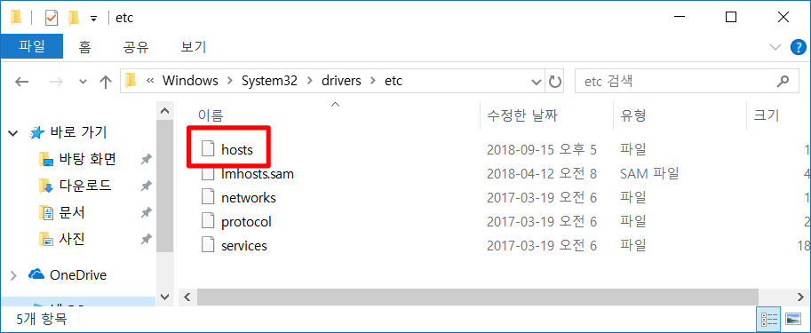 C:\Windows\System32\drivers\etc\hosts 파일을 메모장등의 편집기로 실행합니다.