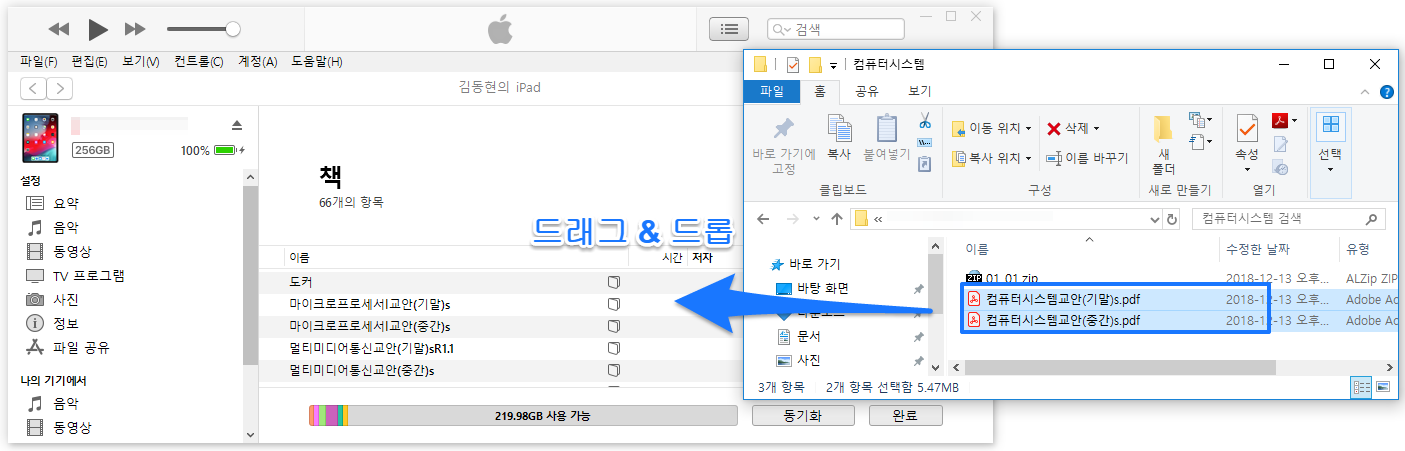[iTunes] 아이튠즈로 아이패드에 노래, PDF, 사진 파일 옮기기