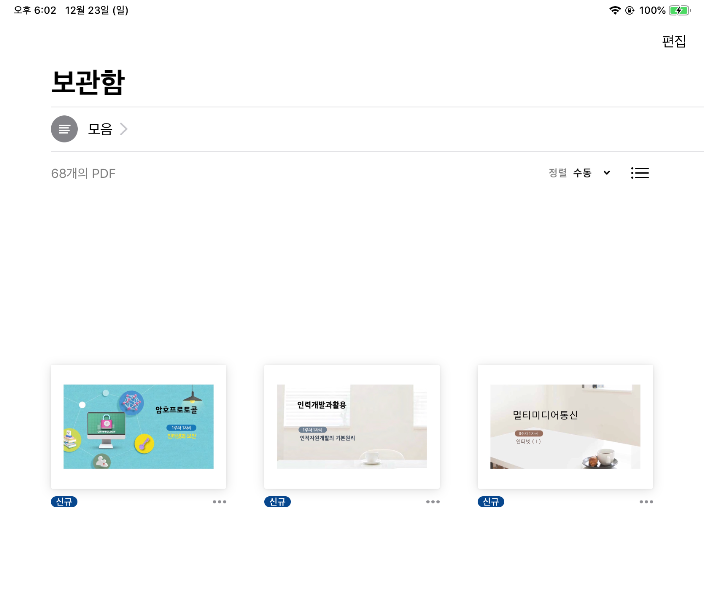 아이패드에는 PDF 파일을 읽을 수 있는 도서앱이 설치되어 있습니다.