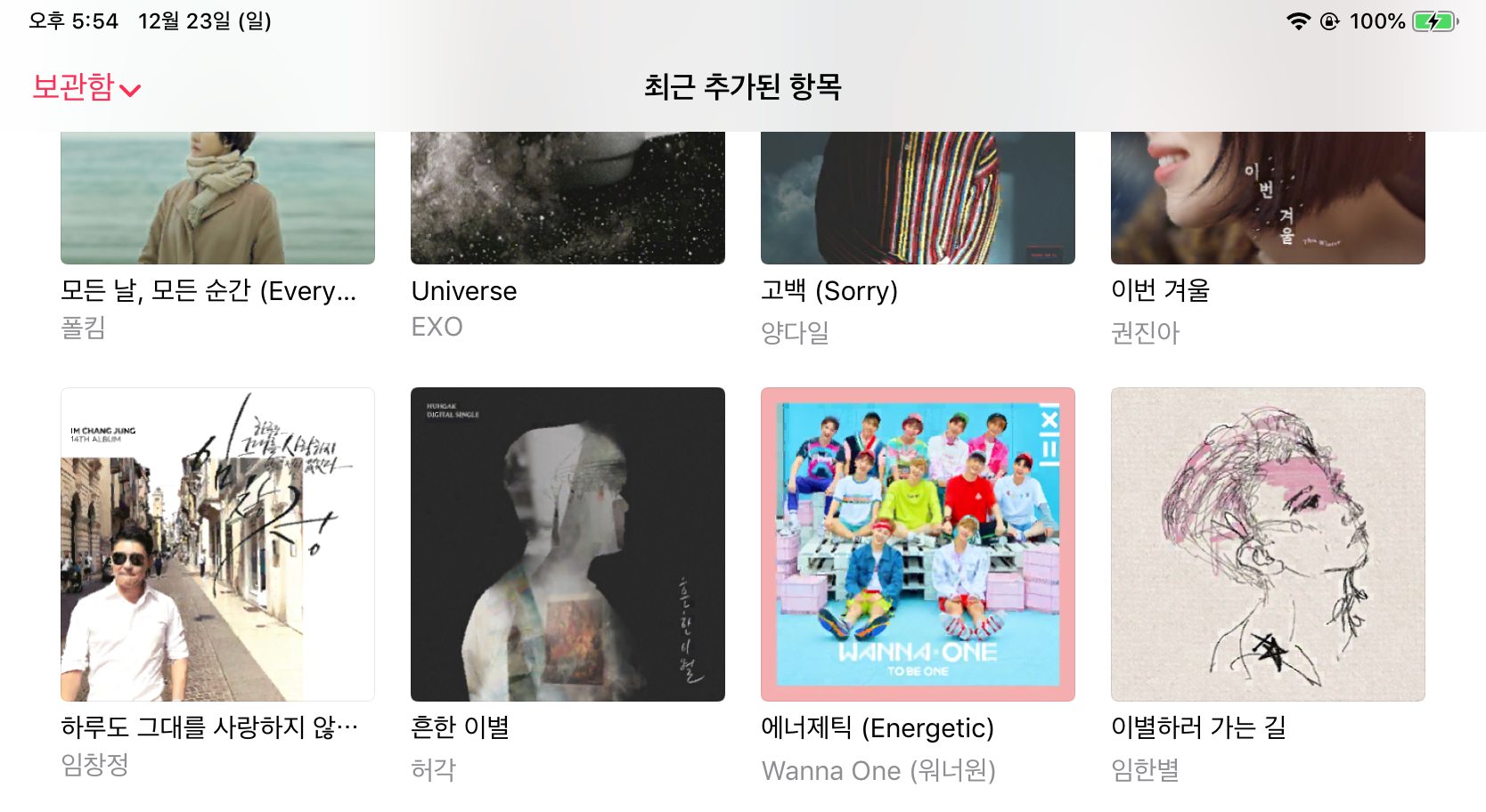 옮겨진 음악 파일들을 볼 수 있습니다.
