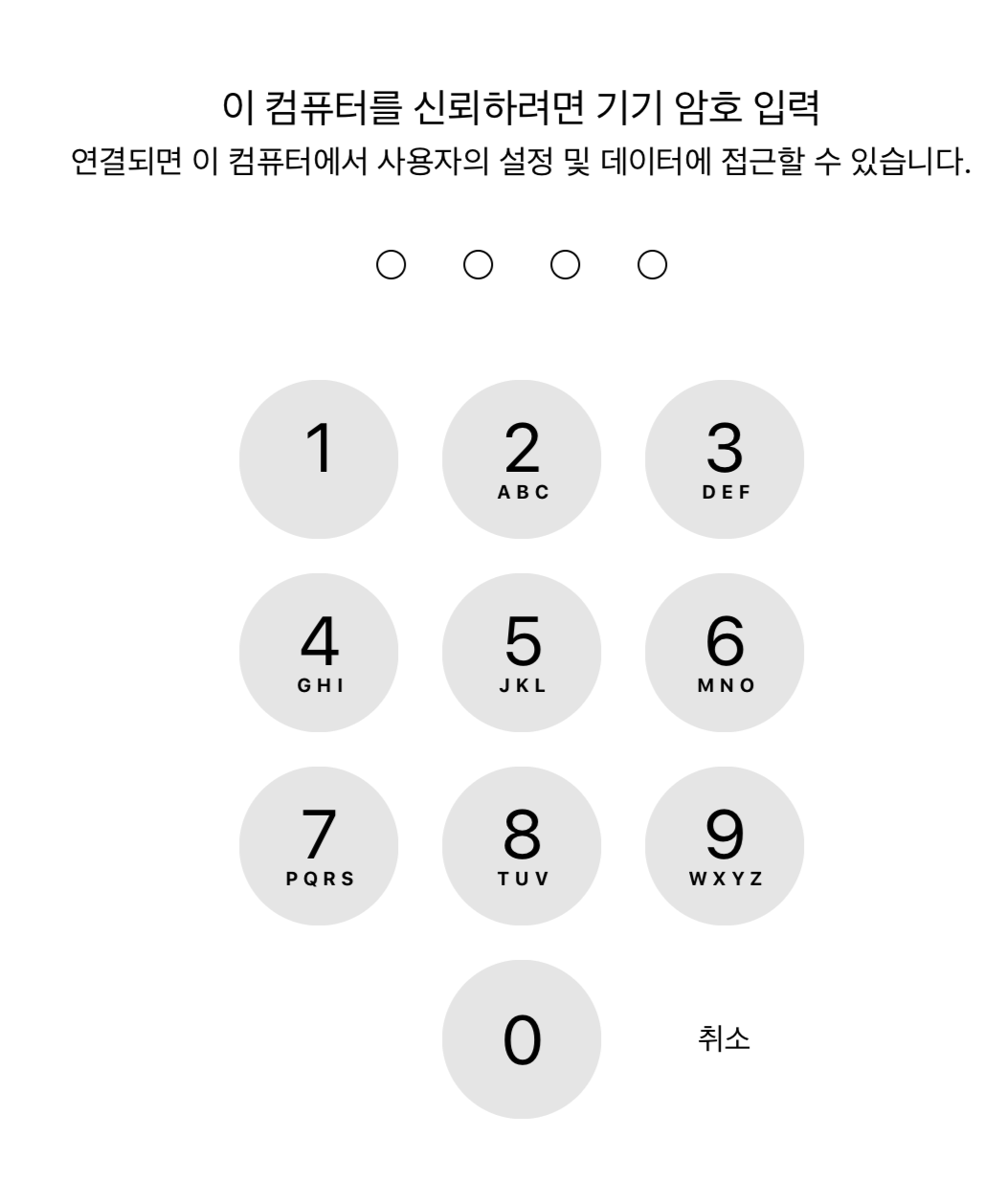 연결된 PC를 신뢰기기로 등록하기 위해 자신이 아이패드에 설정해둔 비밀번호 인증을 합니다.