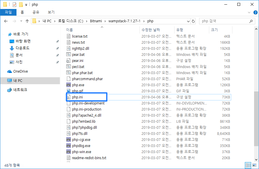 WAMP 경로(예 C:\Bitnami\wampstack-7.1.27-1) > php > php.ini를 편집