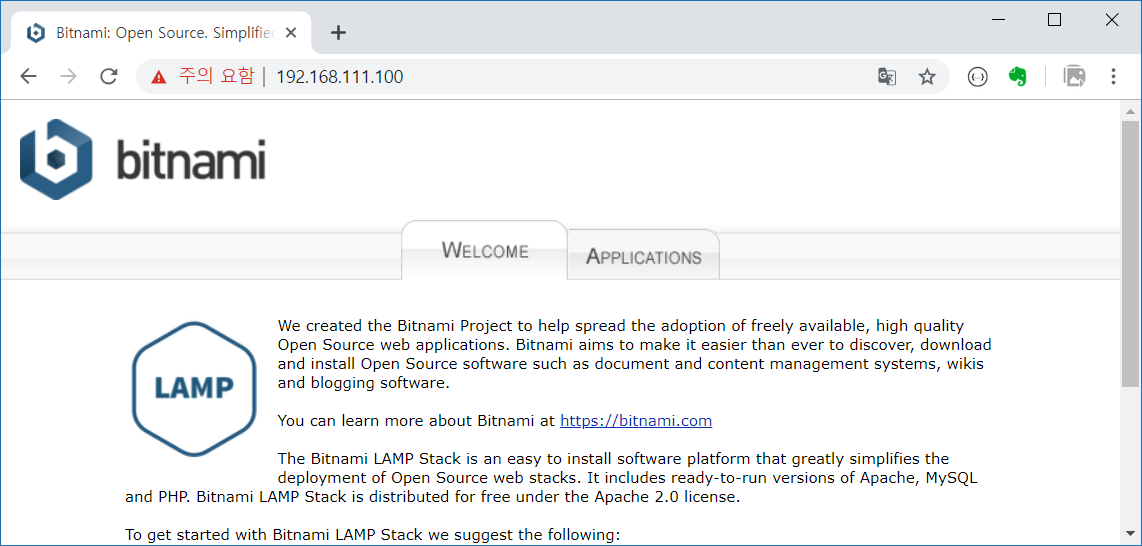 비트나미를 설치한 리눅스 서버와 같은 네트워크상에 있는 컴퓨터로 브라우저를 열고 접속을 테스트해보도록 합니다. 아래와 같이 나타난다면 성공한 것입니다.