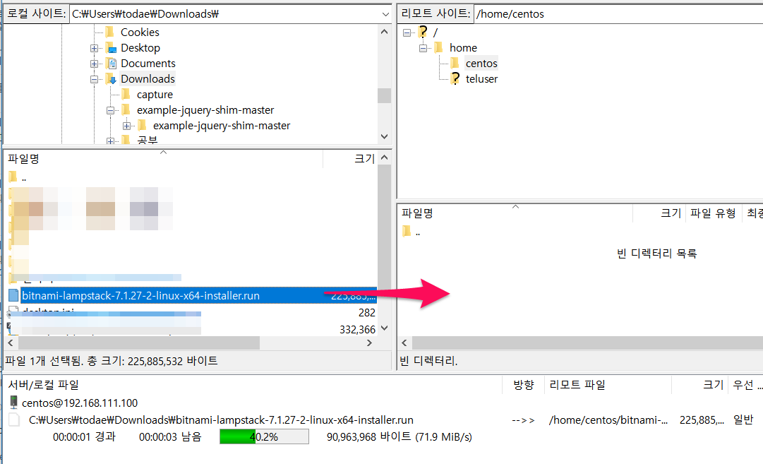 비트나미 LAMP 설치파일 직접 다운로드 하여 FTP로 업로드하기