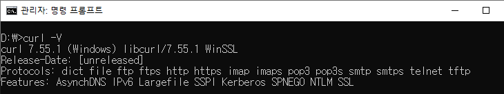 choco로 curl이 설치된 모습입니다.