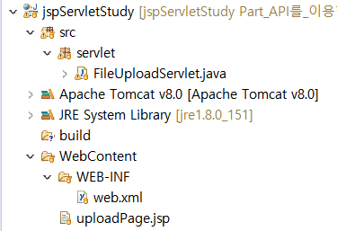 심각: Servlet.service() for servlet [FileUploadServlet] in context with path [/jspServletStudy] threw exception